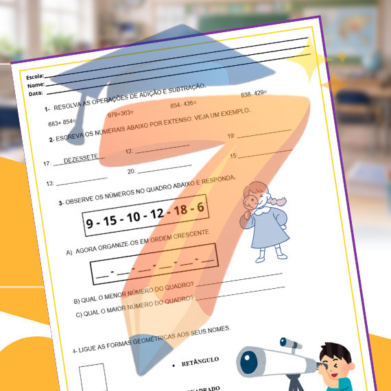 O material trabalha conteúdos essenciais como adição e subtração, sistema de numeração decimal, ordenação de números, figuras geométricas planas, sistema monetário, leitura de gráficos e resolução de problemas do cotidiano, promovendo o desenvolvimento do raciocínio lógico e da autonomia do aluno.