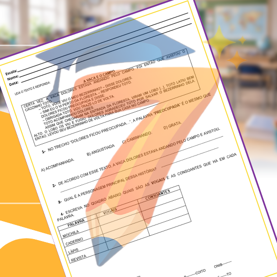 O material trabalha de forma integrada a leitura, a compreensão textual e o sistema de escrita alfabética, promovendo o desenvolvimento do vocabulário, da consciência fonológica e das habilidades de análise linguística. As atividades são contextualizadas, progressivas e adequadas à faixa etária, favorecendo a autonomia do aluno e a consolidação dos conteúdos trabalhados em sala de aula.